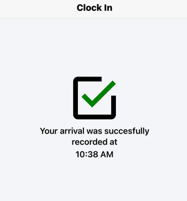 Once you accept, a green check mark will confirm that your arrival has been successfully recorded.