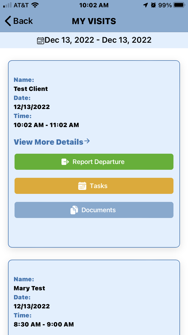 After clocking into the My Visit page, go to My Visit and select Documents attached to the visit.