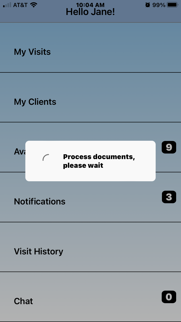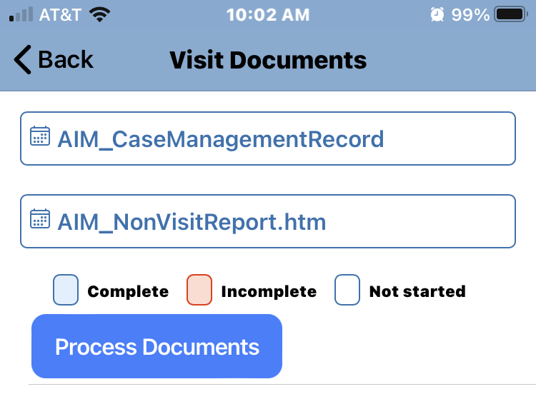 Processing documents is a little different from the above. This is when the Visit has an attached document that needs to be filled typically by the caregiver or nurse. Ex: Medication List.