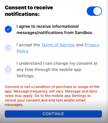 Consent to Receive Text Messages Functionality