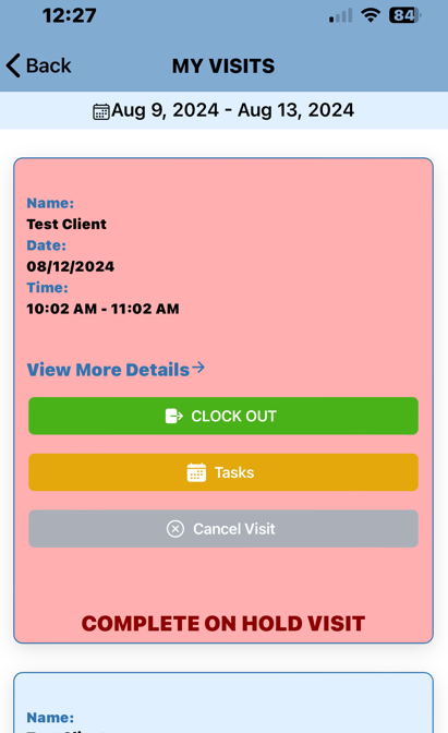 Note: The caregiver will still be able to report arrival on current visits in My Visit tab without having to complete the older On Hold visit.